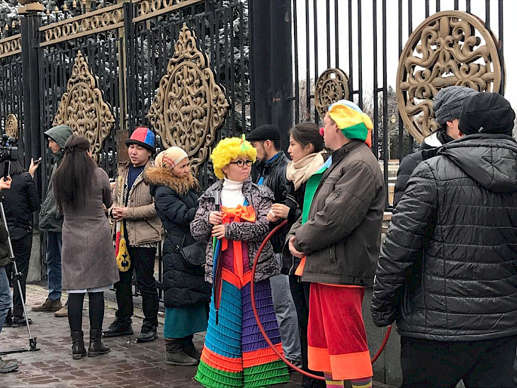 Бишкек, 21.01.19. /Кабар/. Бишкекте бүгүн "Ак үйдүн" алдында цирктин кызматкерлеринин митинги өтүп жатат. Анын катышуучулары директор циркчилер династиясынан чыккан Аида Акматова болушун талап кылышууда.