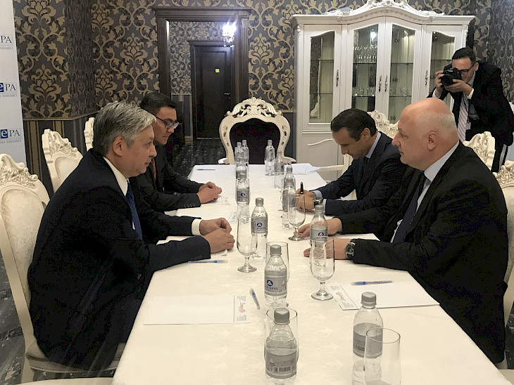 Бишкек. 04.10.18 /Кабар/. Европадагы коопсуздук жана кызматташтык уюмунун Парламенттик Ассамблеясынын (ЕККУ ПА) күзгү отурумунун алкагында Кыргызстандын тышкы иштер министри Эрлан Абдылдаев менен ЕККУ ПАнын президенти Георгий Церетелинин жолугушуусу өттү.