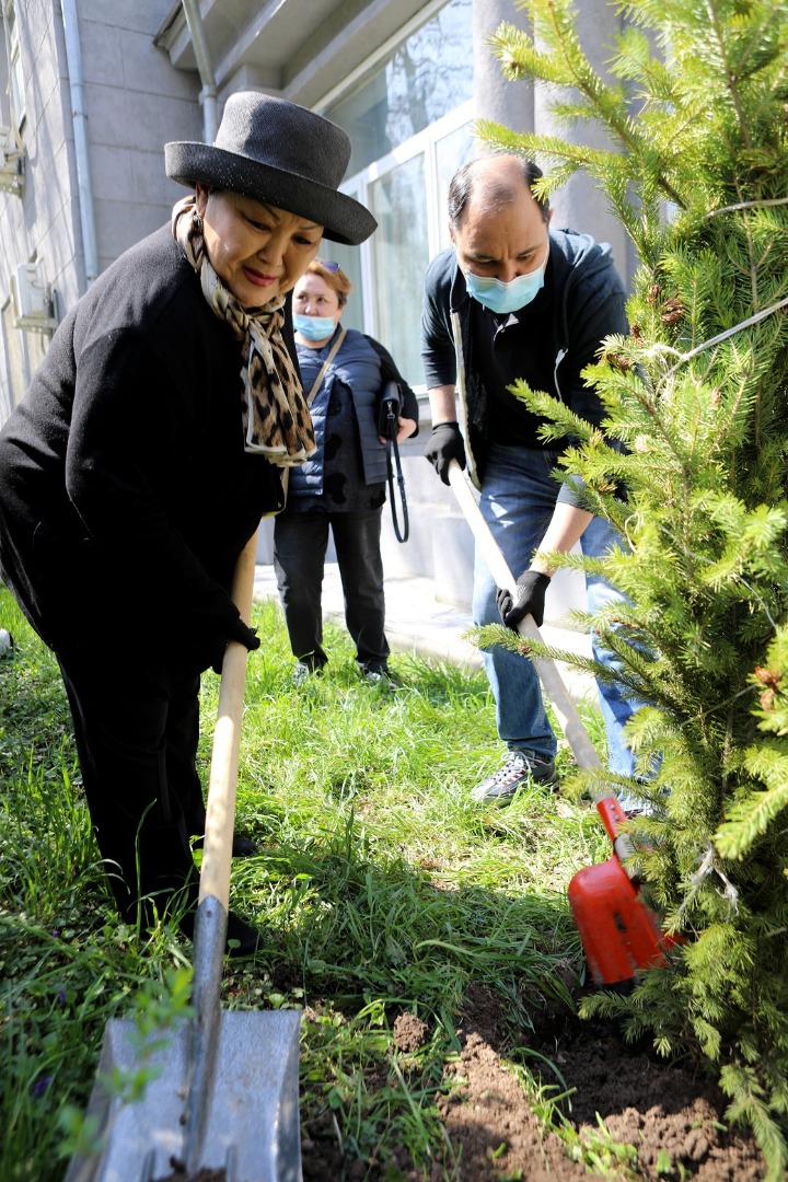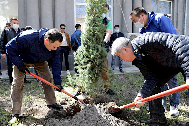 Тышкы иштер министри Руслан Казакбаев КР дипломатиялык кызматынын ардагерлери менен биргеликте Дипломатиялык академиянын имаратынын аймагына ийне жалбырактуу көчөттөрдү отургузушту.