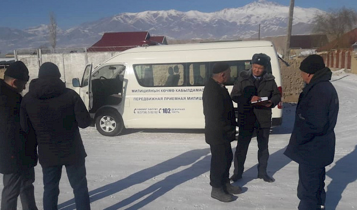 Бишкек, 02.02.21. /Кабар/. Тогуз-Тородо райондук ички иштер бөлүмүнүн көчмө кабылдама унаасы менен район аймагында профилактикалык жумуштар улантылууда. Бул тууралуу Жалал-Абад облустук милициясынын басма сөз кызматы билдирет.