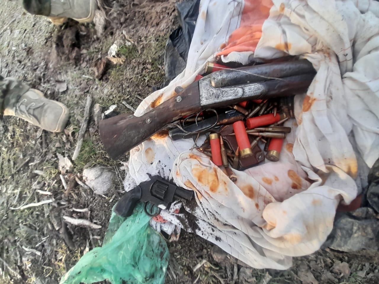 Маалыматка ылайык, курал сактоочу жайдан 1 желим баштыктан кесилген сайлуу мылтык (типтүү эмес ок атуучу курал), 1 револьвер тапанчасы, 1 Макаров травматикалык тапанчасы (ПМ), 1 ПМ магазини, 7 (9мм) ПМдин травматикалык патрону , 10 (16 калибр) аңчылык патрону жана 5,45 калибрдеги 88 патрон табылган.