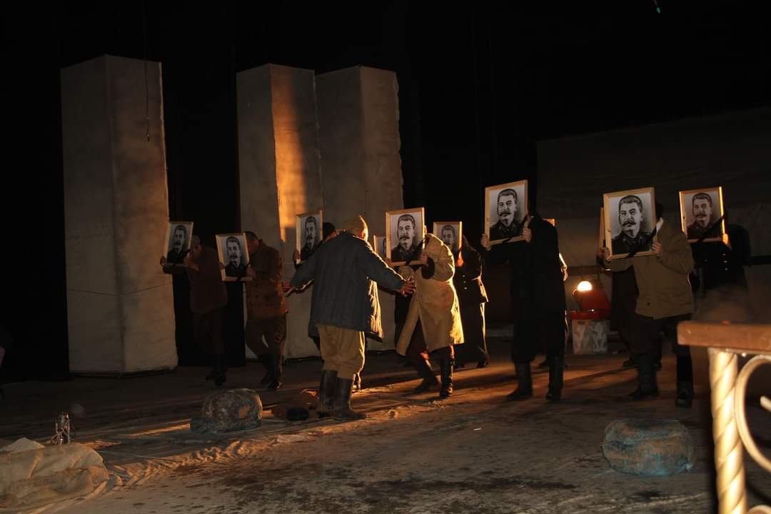 "Кылым карытар бир күн" романынын негизинде даярдалган спектаклди Т.Абдымомунов атындагы Кыргыз улуттук академиялык драма театрынын көркөм жетекчиси, белгилүү режиссёр Назым Мендебаиров сахналаштырган.
