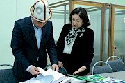 Улуттук комиссиянын төрагасы Мелис Мураталиев "Кыргызтест" системасынын чакан тестин аткаруу аркылуу мазмунун баамдап, мекеменин директору менен мамлекеттик тилди өнүктүрүүнүн келечегин жана багыттарын талкуулашты.