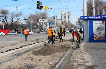 Бишкектин Байтик Баатыр көчөсүндөгү тротуарды оңдо...