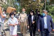 Бишкек, 05.08.20. /Кабар/. Кыргыз Республикасынын вице-премьер-министри Аида Исмаилова, Кыргыз Республикасынын Өкмөтүнүн Чүй облусундагы ыйгарым укуктуу өкүлү Алтынбек Намазалиев жана россиялык дарыгерлер Чүй облусунун Токмок шаарында жайгашкан бир катар стационарларга барып, Чүй аймактык ооруканасынын жана Токмоктогу №4 үй-бүлөлүк медицина борборунун абалы жана медициналык кызматкерлердин иштөө шарты менен таанышты. Бул тууралуу өкмөттүн аппаратынын маалыматтык камсыздоо бөлүмүнөн кабарлашты.