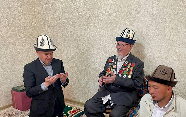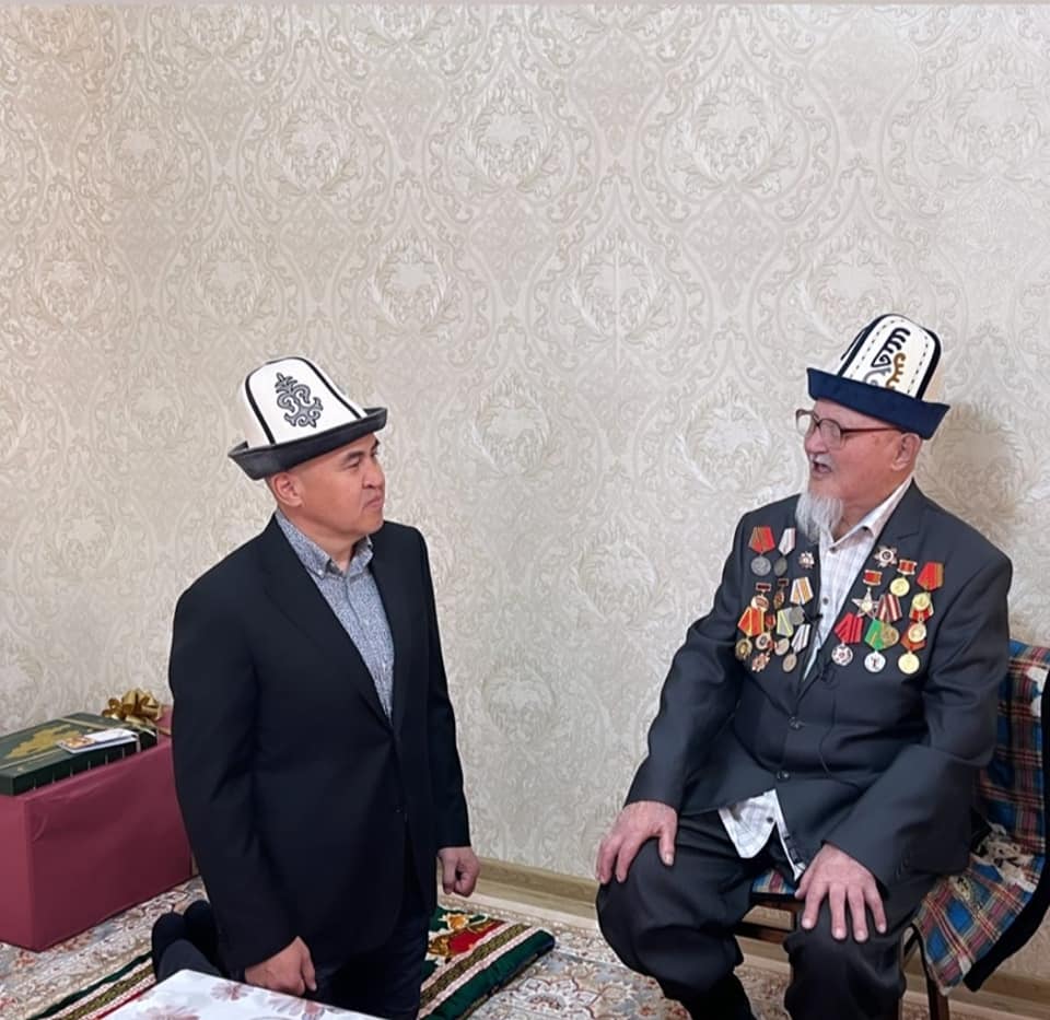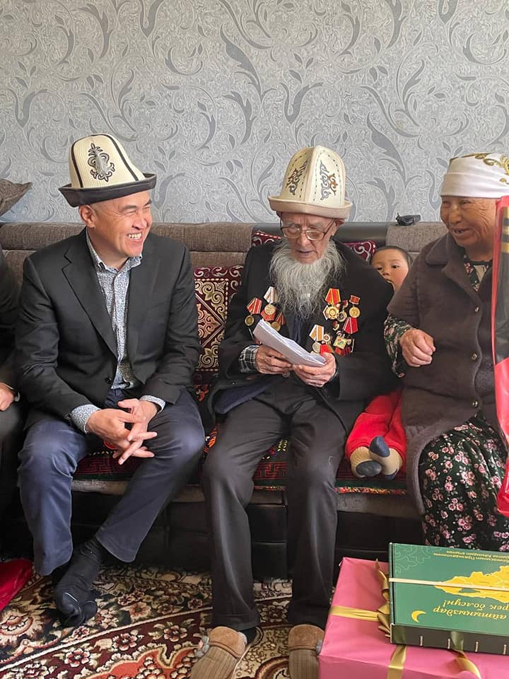 Облус жетекчиси Каракол шаарындагы 99 жаштагы ардагер Кенжебай Жакшылыковдун жана Ак-Суу районундагы 97 жаштагы ардагер Кожогул Сатыбалдиевдин үйүнө барып, акчалай жардам жана белек тапшырды.