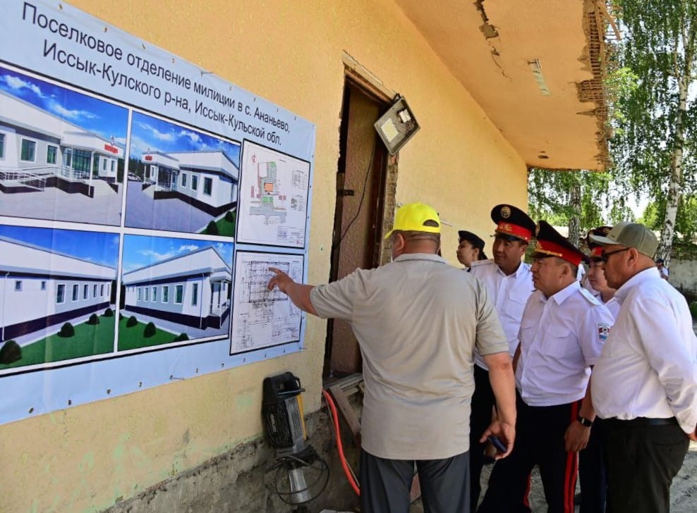Бишкек, 09.06.24. /Кабар/. Ысык-Көл, Жети-Өгүз райондорунун жана Каракол шаарынын ички иштер бөлүмдөрүнүн Ананьево, Барскоон, Дархан жана Пристань-Пржевальск айылдык милиция бөлүмчөлөрүнүн имараттарынын курулушуна капсула салынды.