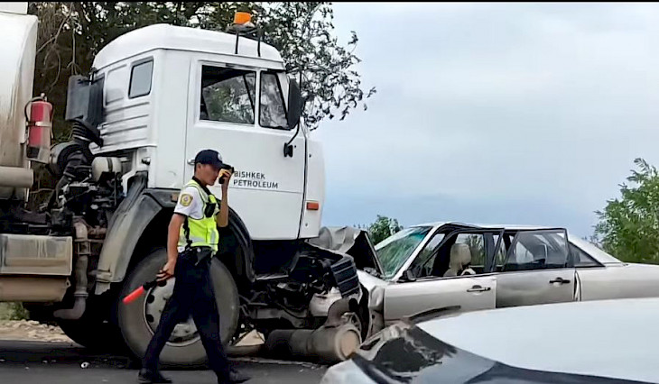 Бишкек, 28.07.23. /Кабар/. Ысык-Көл районунда Чырпыкты жана Тору-Айгыр айылдарынын ортосунда күн мурун “Ауди-100” жана “КамАз” үлгүсүндөгү бензовоз сүзүшкөн.