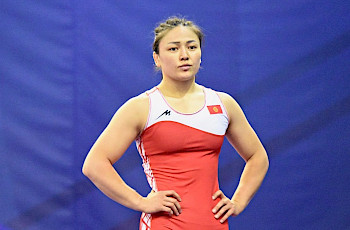 Ал алгач индиялык Киран аттуу кыз менен килем үстүнө чыгып, атаандашынын далысын жерге басуу менен таза жеңишти камсыздады. Чейрек финалда кыргыз кызы канадалык Жюстина Ди Стасио менен күрөшүп, анын дагы далысын жерге басып, жеңишти илип кетти.