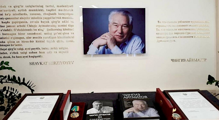 Өзбекстандын улуттук университетиндеги “Чынгыз Айтматов жана Өзбекстан” туруктуу көргөзмөсү 2018-жылы президент Шавкат Мирзиёевдин атайын жарлыгы менен улуу жазуучунун 90 жылдык мааракесине арналып түзүлгөн.