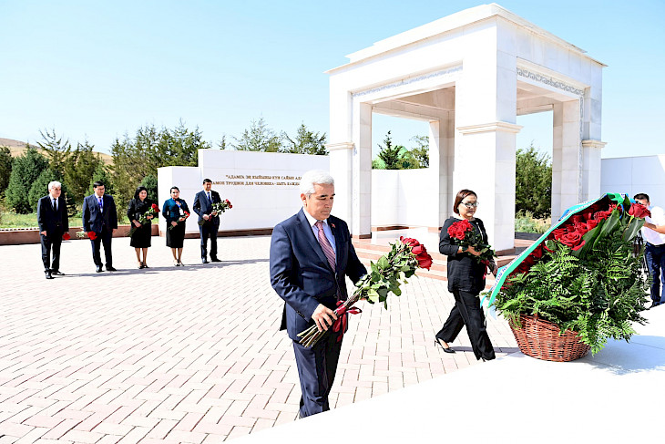 Бишкек, 21.09.21. /Кабар/. Өзбекстандын Олий Мажилисинин төрайымы Танзила Нарбаева Кыргызстанга болгон расмий сапарынын сапарынын алкагында төраганын орун басары Аида Касымалиева менен бирге “Ата-Бейит” мемориалдык комплексине барып, Чыңгыз Айтматовдун күмбөзүнө гүлчамбар койду.