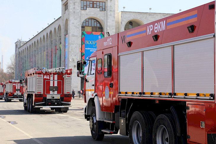 Бишкек, 25.03.22. /Кабар/. Бүгүн, 25-мартта Бишкектин “Ала-Тоо” аянтында өрт өчүрүүчү унааларды тапшыруу иш-чарасы өттү. Бул тууралуу ӨКМдин басма сөз кызматы билдирди.