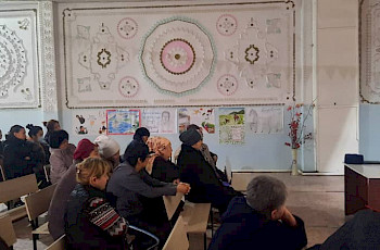 Иш-чаранын жүрүшүндө жаңы салынган мектептин курулушу менен таанышып, ошол эле учурда көп жыл эмгектенген мугалимдердин эмгегин баалап, Жогорку Кеңештин Ардак грамоталарын тапшырды.