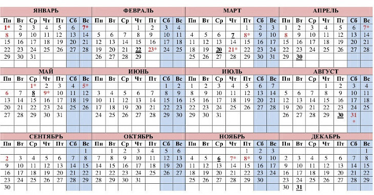 Дем алыш жана жумуш эмес майрам күндөрүн рационалдуу пайдалануу максатында, беш күндүк иш жуманын графиги боюнча иштеген, мамлекеттик бюджеттен каржылануучу мамлекеттик жана муниципалдык уюмдардын, мекемелердин жана ишканалардын кызматкерлери үчүн төмөнкүдөй белгиленди: