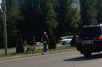 Бишкекте жай-баракат жолборс жетелеп жүргөн киши. ...