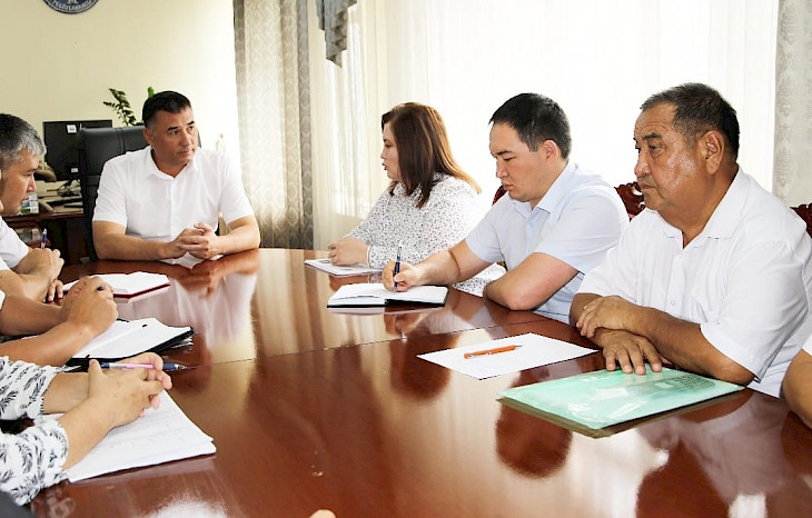 Бишкек, 08.08.22./Кабар/. Жалал-Абад облусунун башчысы Абсаттар Сыргабаев эмгек, социалдык камсыздоо жана миграция министринин орун басары Жылдыз Полотова жана облустун район-шаарларындагы Эмгек жана социалдык өнүктүрүү башкармалыгынын башчылары менен жолугушту.