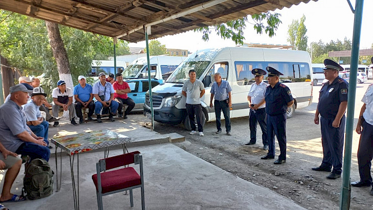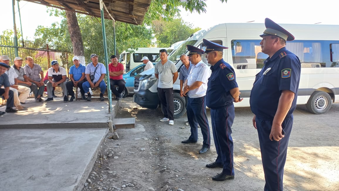 Маалыматка ылайык, КР ИИМдин Жол кыймылынын коопсуздугун камсыздоо башкы башкармалыгынын ЖКК жана УКТ башкармалыгынын башчысы Т. Досов жана штаб башчысы У. Умаровдор Жалал-Абад облусунун аймактарында жайгашкан автобекеттерде жана ар тараптуу багыттарга жүргүнчү ташып каттаган такси кызматынын айдоочулары менен жолугушууларды өткөрүп, түшүндүрүү иштерин жүргүзүү менен бирге айдоочулардын дагы көпчүлүк суроолоруна жооп берүүдө.