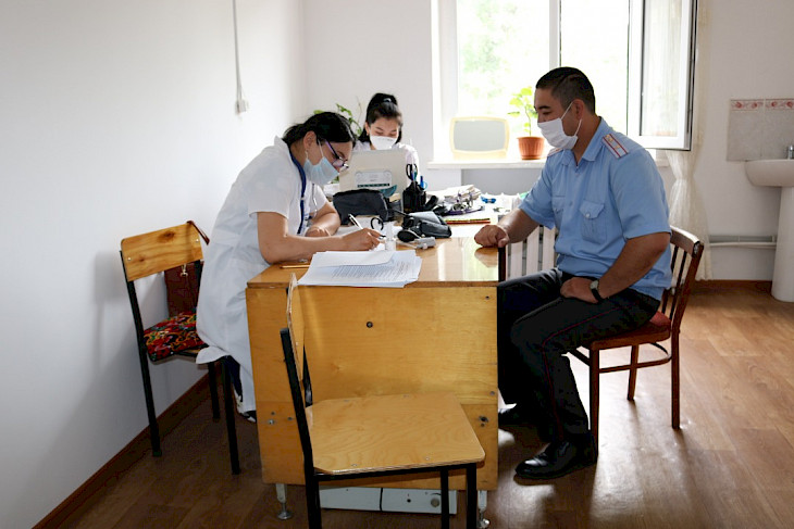 Маалыматка ылайык, алгач кызматкерлердин кан басымы, сатурациясы текшерилип, андан соң жугуштуу илдетке каршы вакцина менен эмделишти.