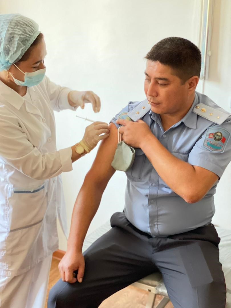 Бишкее, 16.07.21. /Кабар/. Жалал-Абад облустук ички иштер башкармалыгынын жетекчилиги, бөлүм жана кызмат башчылары, өздүк курам коронавируска каршы эмдөөдөн өтүп жатышат. Бул тууралуу облустук милициянын басма сөз кызматы билдирет.
