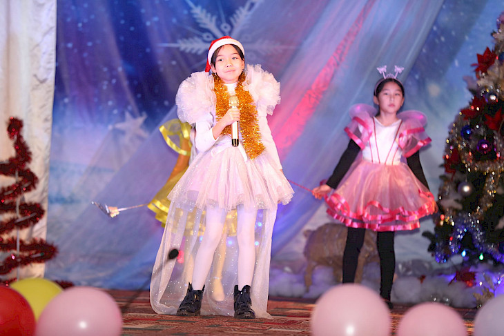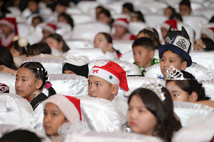 Ошондой эле балатыга келген балдарга Барпы театрынын кызматкерлери тарабынан даярдалган "Кар кишилер" жомогу тартууланды.