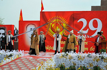 Саамалыкта облус башчысы жалпы катышуучуларды куттуктап, Кыргызстан эгемендүүлүккө жетип, көз карандысыздыгын даңазалоодо кызыл асаба өзгөчө мааниге ээ экенин айтты.