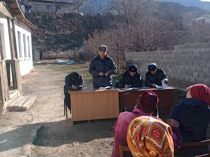 Бишкек, 11.02.21. /Кабар/. Жалал-Абад облусунун аймагында укук бузуулардын алдын алуу жана милициянын иш-аракетине карата жергиликтүү тургундардын ой-пикирлерин угуу максатында элдик жолугушууларды өткөрүү улантылууда.