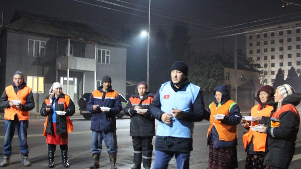 Маалыматка ылайык, акциянын катышуучулары таң эрте тазалык кызматкерлерине ысык чай жана өз колдору менен даярдаган таттууларды беришти.
