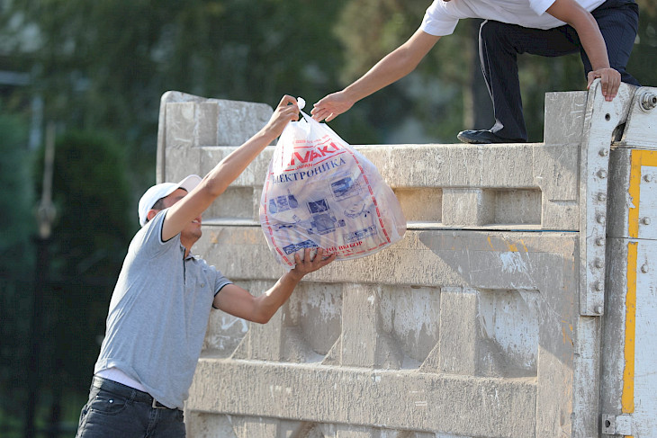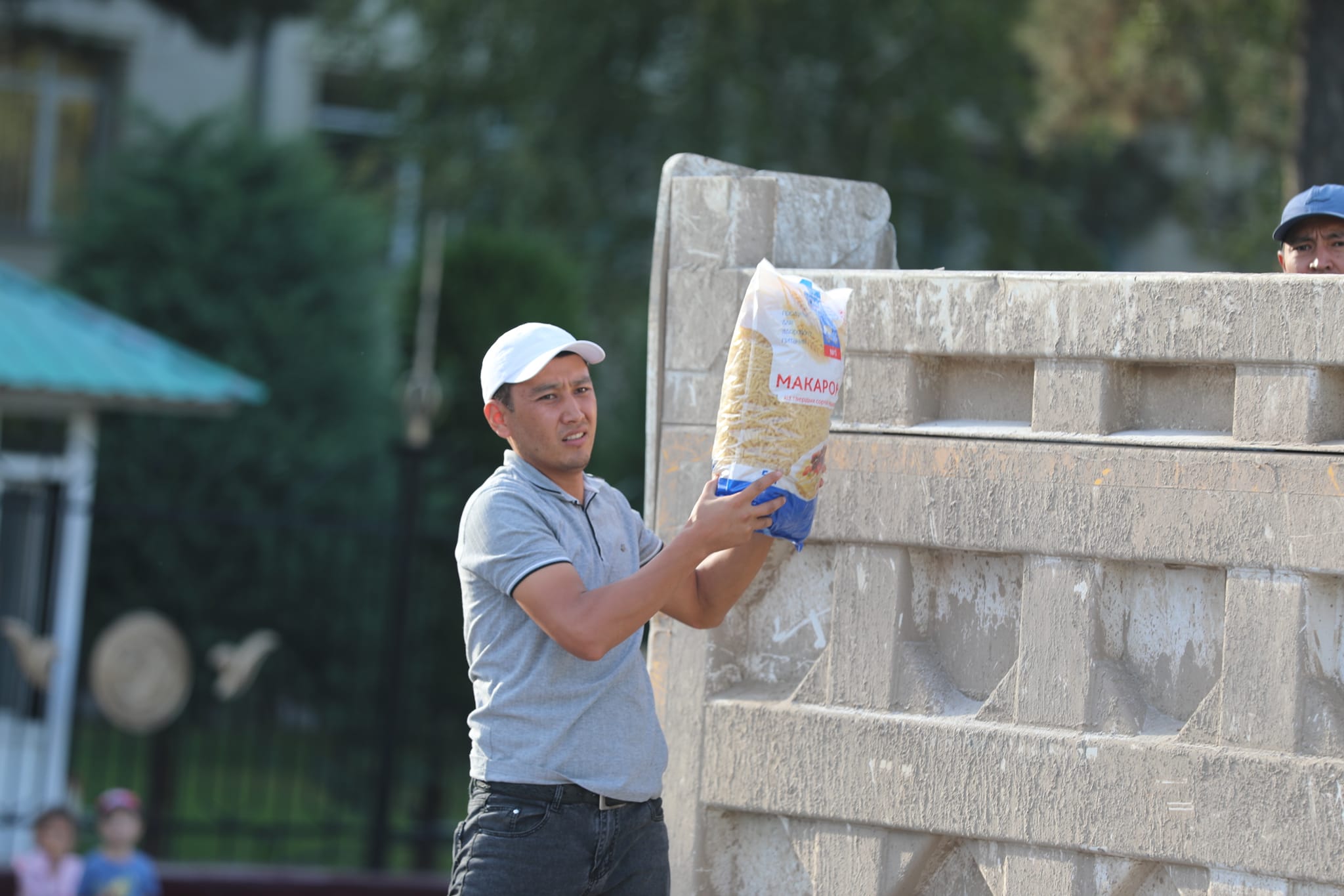 Жалал-Абад шаардык мэриясынан билдиришкендей, жергиликтүү бийлик жана шаардагы ишкерлер тарабынан 5 тонна өсүмдүк майы, 5 тонна ун, 3 тонна гүрүч, 3 тонна макарон, 2 тонна кумшекер, 4 миң 640 даана нан, 400 блок ичүүчү суу жыйналып, ӨКМдин жардамында Баткен облусуна жөнөтүлдү.