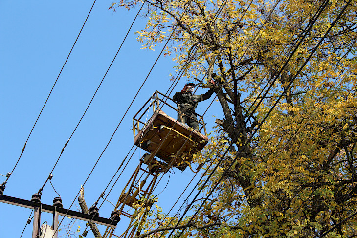 "Көк-Арт район электр тармактар ишканасынын карамагында 10 кВ аба чубалгылардын көлөмү 85 чакырымды түзөт, ал эми 0,4 кВ 129 чакырымдан турат. Күз-кыш айларына карата даярдыктар энергетиктер үчүн эрте жаздан башталат, антпесе тейлөөнүн аянты абдан эле чоң. Көк-Арт район электр тармактар ишканасынын кызматкерлери Октябрь айылындагы жол жээгиндеги бийик бак-дарактарды бутап жатышат. Антпесе катуу шамал, ошондой эле суу аралаш кар жааганда, дарактардын бутактары ийилгенде же сынса электр чубалгыларга тийип, кыска чыңалууну жаратып электр энергиясын үзгүлтүккө учуратат", - деп айтылат маалыматта.