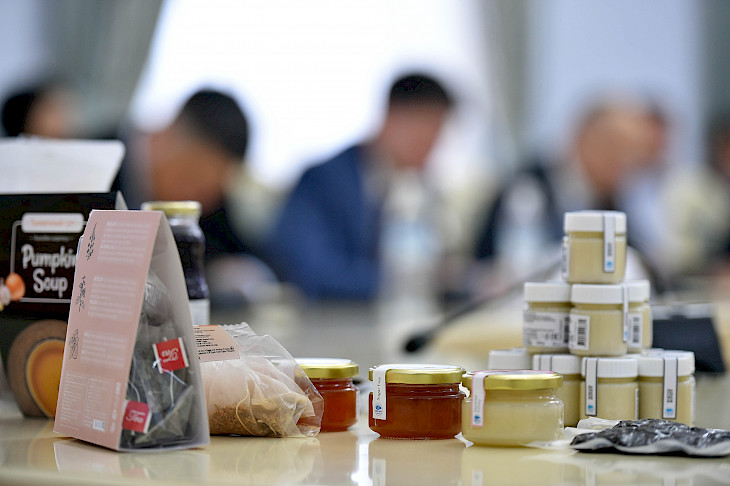 Министрлер кабинетинин башчысы «Бир айыл – бир продукт» долбоорунун өлкөнүн аймактарында ийгиликтүү ишке ашырылып жатканын белгилеп, өндүрүлгөн продукция жакшы кабылданып, чет мамлекеттерге экспорттолуп жатканын билдирди.