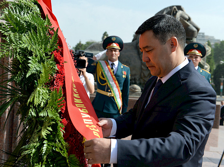 Бишкек, 29.06.21. /Кабар/. Кыргыз Республикасынын президенти Садыр Жапаров бүгүн, 29-июнда, Тажикстан Республикасына расмий сапарынын алкагында Душанбе шаарында тажик мамлекетинин негиздөөчүсү Исмоили Сомонинин эстелигине гүлчамбар койду. Бул тууралуу президенттин басма сөз кызматы билдирет.