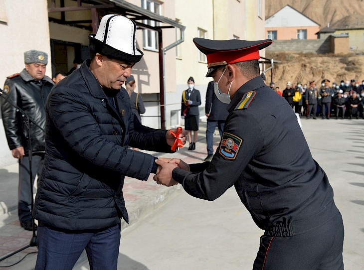 Андан соң,Садыр Жапаров Кочкор райондук ички иштер органдарынын жаңы имаратынын ачылыш салтанатына катышты.