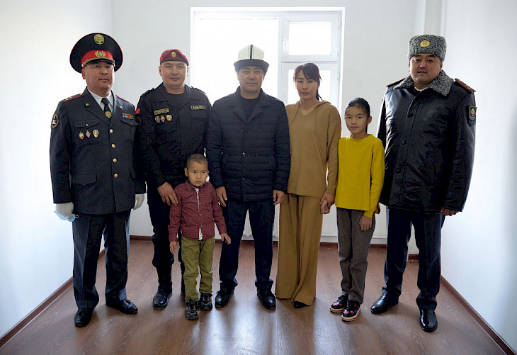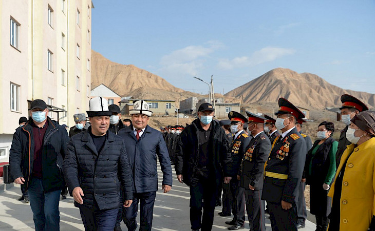 Бишкек, 09.11.20. /Кабар/. Президенттин милдетин аткаруучу, премьер-министр Садыр Жапаров Нарын облусуна жумушчу сапарынын алкагында Нарын шаарында укук коргоо органдарынын кызматкерлери үчүн курулган көп батирлүү турак жайдын ачылыш аземине катышты. Бул тууралуу өкмөттүн басма сөз кызматы билдирди.
