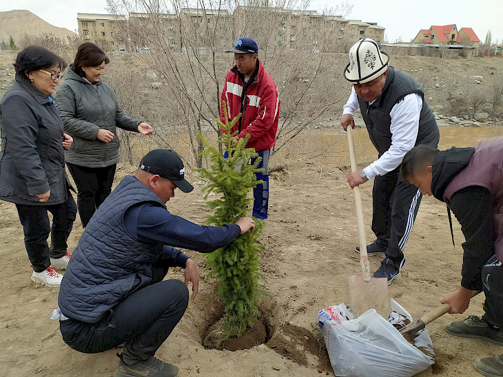 Бишкек, 11.04.22. /Кабар/. Кечээ, 10-апрелде "Жашыл мурас" улуттук өнөктүгүнүн алкагында Сабыркул Ашимбаевдин демилгеси менен Нарын шаарынын "64" аймагындагы Нарын суусунун жээгине 200гө жакын көк карагайдын көчөттөрү отургузулуп, жаңы сейил бак пайда болду. Бул тууралуу КР президентинин Нарын облусундагы ыйгарым укуктуу өкүлүнүн басма сөз кызматы билдирди.