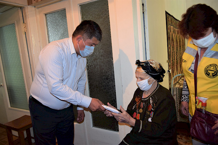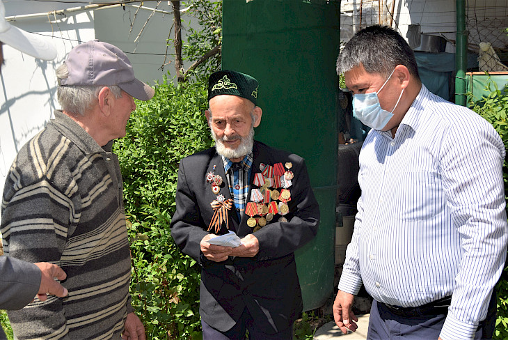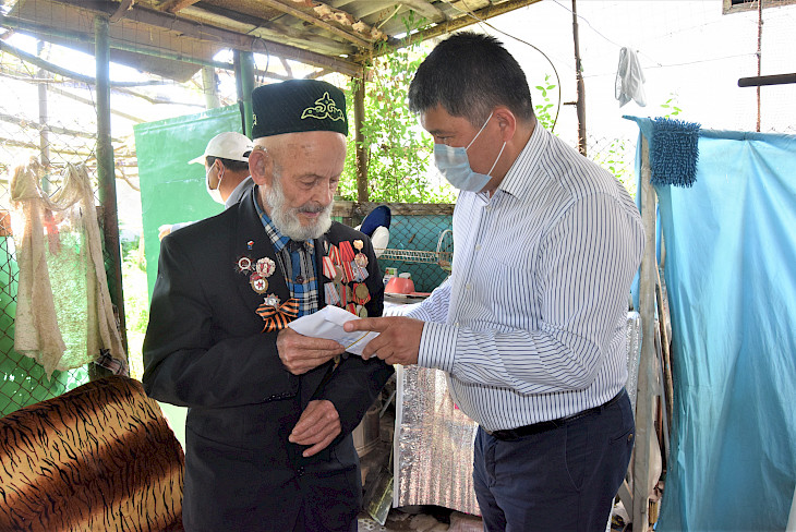 "Калаа башчы президент Сооронбай Жээнбековдун куттуктоосун жеткирип, ар бир ардагерге республикалык бюджеттен бөлүнгөн 75 миң сомдон акча каражатын тапшырды. Андан тышкары, жергиликтүү бюджеттин эсебинен бир кап ун жана башка азыктар берилди", - деп кабарлашты мэриядан.