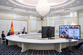 «Мамлекеттик чиновниктер өлкө жарандарына сапаттуу кызмат көрсөтүүгө милдеттүү. ЖОЖдорго жана мектептерге санариптештирүүнү тез арада киргизүү менен билим берүү системасы коронавирус инфекциясы жайылган мезгилде келип чыккан көйгөйлөрдү чече алды. Эми ооруканаларга дагы санарип технологиялар киргизилиши керек. Өлкөбүздө Президент менен айыл өкмөтүнөн баштап баары санариптештирүү процессине тартылышы керек. Ошондо гана өлкө өнүгөт», — деп өзгөчө баса белгиледи Президент Сооронбай Жээнбеков.
