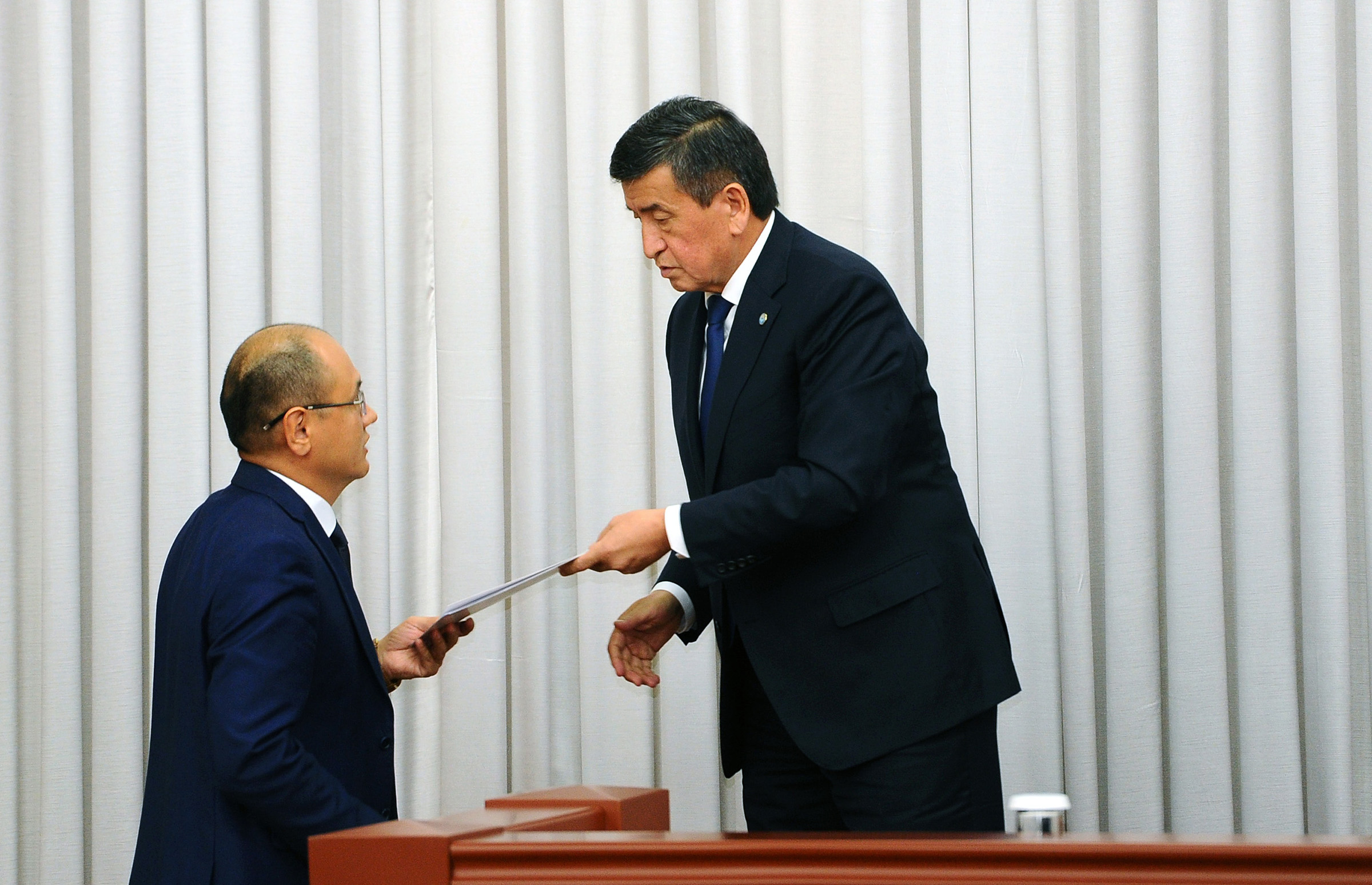 Мамлекет башчысы бийлик бутактарын эриш-аркак жана биримдикте, өлкөбүздүн кызыкчылыгы үчүн иштөөгө чакырып, Жогорку Кеңештин жаан Өкмөттүн ишине ийгилик каалады.
