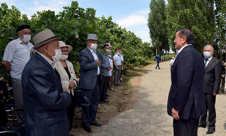 Бишкек, 11.06.20. /Кабар/. «Аравандыктар ар дайым эмгекчилдиги жана ак ниеттүүлүгү менен айырмаланып келишет. Райондун айыл чарбасы аравандыктардын эле эмес, өлкөнүн башка аймактарынын тургундарынын дагы керектөөсүн жапкандыгы менен өзгөчөлөнөт. Силердин продукцияңар толугу менен тышкы рыноктордо дагы атаандаштыкка жөндөмдүү«, — деп баса белгиледи Кыргыз Республикасынын Президенти Сооронбай Жээнбеков бүгүн, 11-июнда, фермердик чарбага барганда, райондун тургундары менен болгон баарлашуусунда.