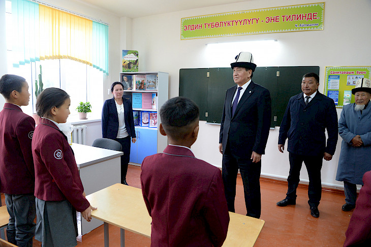 Мамлекет башчысы быйыл республикалык бюджеттин эсебинен жер-жерлерде 156 мектеп, анын ичинде Талас облусунда 22 мектеп курулуп жатканын маалымдады. Башка булактардын каражаттарынын эсебинен дагы 27 мектеп курууга даярдык көрүлүп жатат. Андан кийинки жылдары дагы 100дөн ашуун жаңы мектеп курулат.
