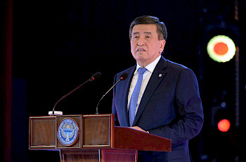 Мамлекет башчысы мамлекеттик сыйлыктар жана жогорку наамдарды алып жаткандарды куттуктап, алардын ак эмгектин, талыкпаган изденүүнүн, чыгармачыл жаратмандыктын үзүрү менен алкоого арзып, мамлекеттик сыйлыкты алып жаткандарын белгиледи.