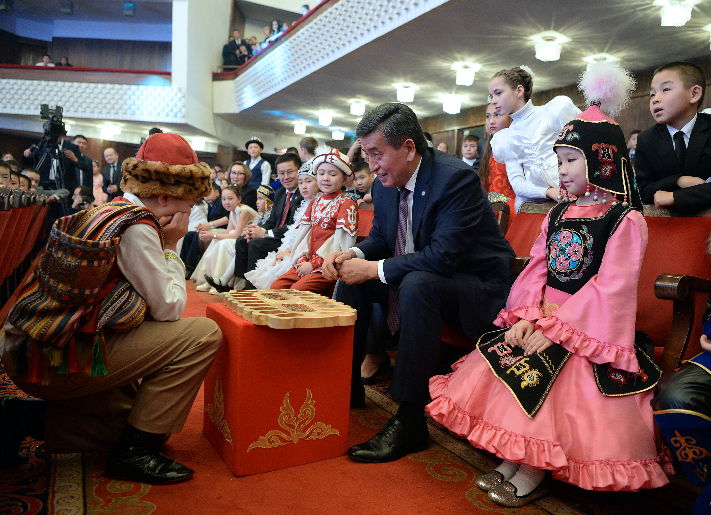Бүгүн залда окуунун мыктылары, олимпиадалардын, спорттук мелдештердин жеңүүчүлөрү, ар кандай ийгиликтин ээси болгон балдар отурганын белгилеп, Мамлекет башчысы аларга ийгилик каалап, алар менен сыймыктанып жатканын белгиледи.