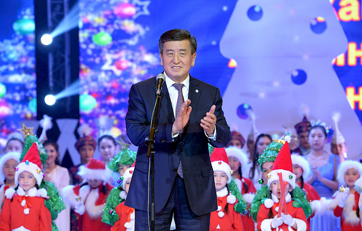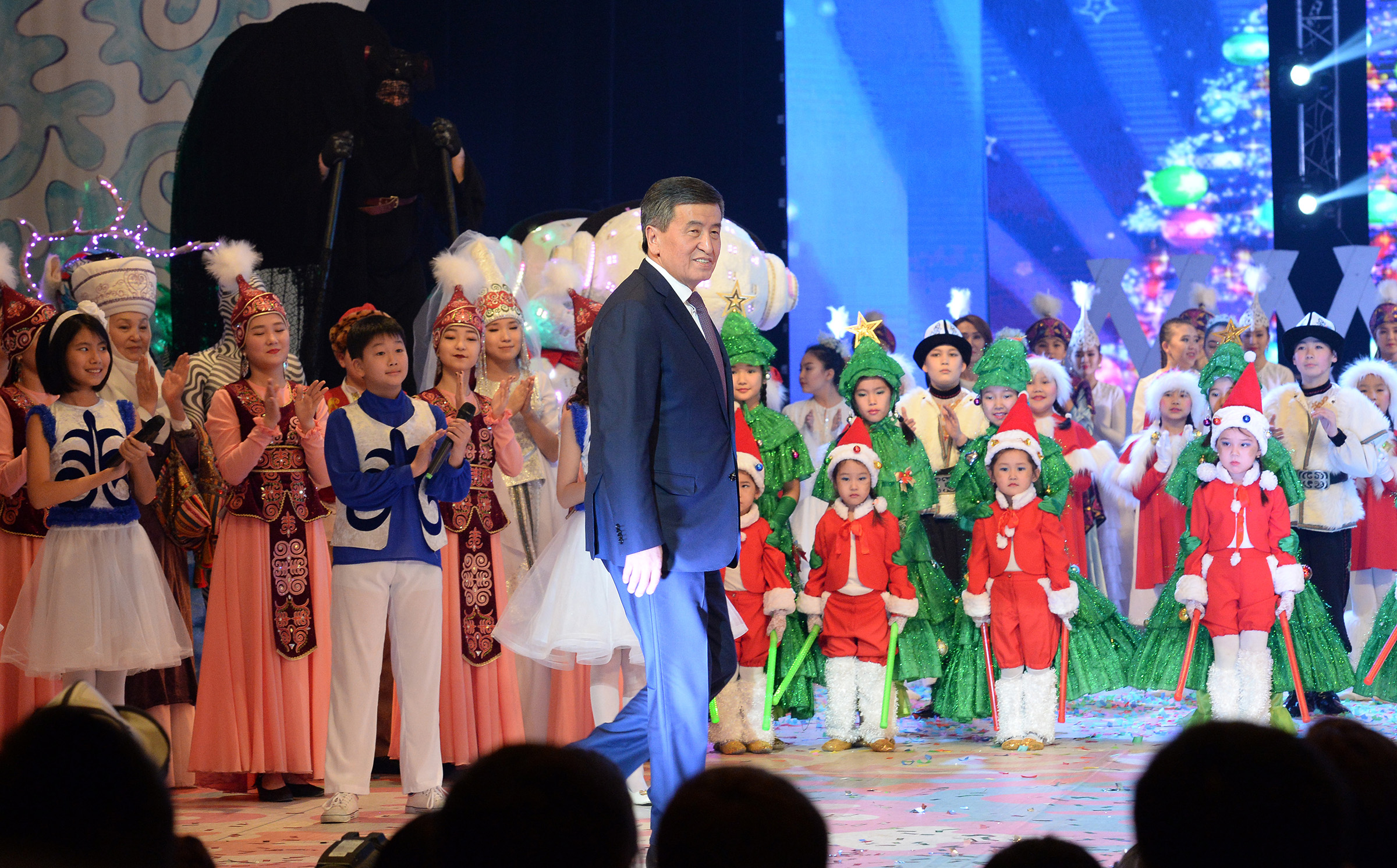 Бишкек, 26.12.18. /Кабар/. «Алдыңарга чоӊ максаттарды койгула. Аракет кылгыла. Ошондо гана ийгилик болот!», — деп белгиледи Кыргыз Республикасынын Президенти Сооронбай Жээнбеков бүгүн, 26-декабрда Т. Сатылганов атындагы Кыргыз улуттук филармонияда республиканын бардык областтарынан келген балдар үчүн коюлган жаңы жылдык балаты майрамында.