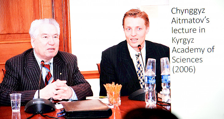 Фотокөргөзмөдө адабиятчы, Чыңгыз Айтматовдун чыгармаларын венгер тилине которгон Давид Шомфаи 2006-жылы Чыңгыз Айтматовдун Венгрияга келгени, улуу жазуучу менен баарлашканы, ошондой эле Чыңгыз Айтматовдун туулган айылына — Талас облусундагы Шекерге барганы тууралуу кыргыз тилинде айтып берди.