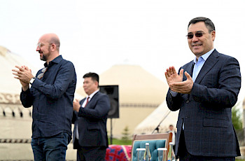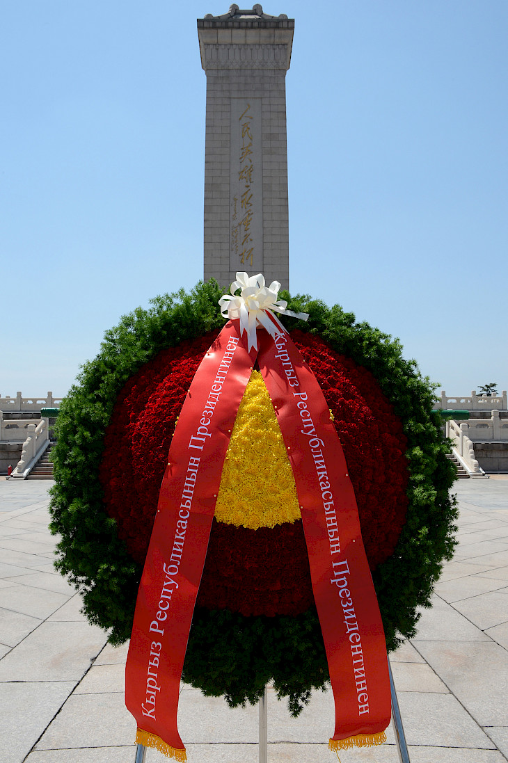 Президент Сооронбай Жээнбеков «Элдик каармандар» монументине гүл чамбар коюп, Кытайдын курман болгон баатырларын эскерди.