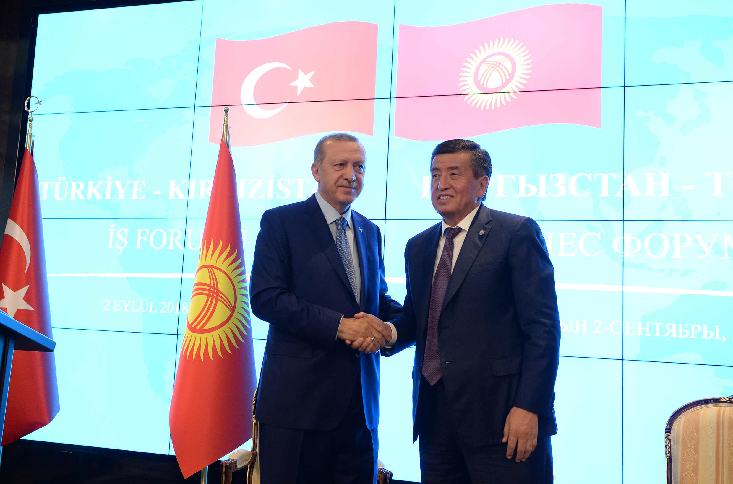 Бишкек, 02.09.18. /Кабар/. Кыргыз Республикасынын Президенти Сооронбай Жээнбеков Түркия бизнесмендерин Кыргызстандын экономикасына инвестициялоого чакырды. Бул тууралуу Мамлекет башчысы бүгүн, 2- сентябрда Бишкек шаарында Кыргыз-Түрк бизнес-форумунда белгиледи. Бизнес-форумга Кыргызстанда расмий визит менен жүргөн Түркия Республикасынын Президенти Режеп Тайып Эрдоган да катышты.