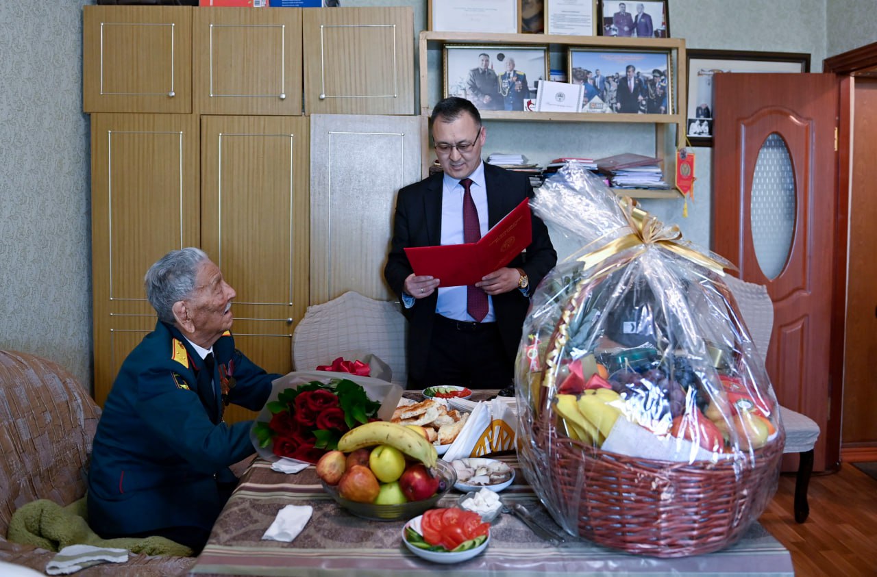 “Кан күйгөн согушка аттанып, көп улуттуу Совет элин душмандардан коргогон аталарыбыздын эрдигин эч качан унутпайбыз. Ата мекен алдындагы милдеттерин чоң жоопкерчилик менен аткарган Сиздей баатырларыбыз менен ар дайым сыймыктанабыз. Андыктан ардактуу аксакалыбыз катары эл арасында аман жүрүңүз. Сиздин баскан жолуңуз азыркы муунга эле эмес, келечектеги урпактарыбызга да үлгү”, – деди Шабданбек Алишев.