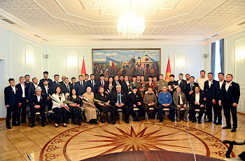 “Буйруса, ушул мектептерден Кыргызстан үчүн кызмат кылып, өлкөбүздү дүйнөгө тааныткан улан-кыздар тарбияланып чыгаарына терең ишенем”, – деди Нурланбек Шакиев.