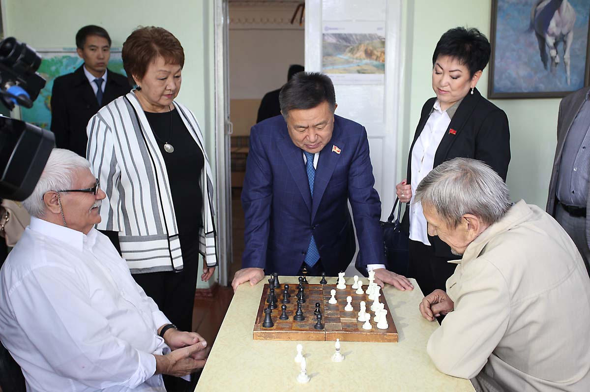 Андан соң Төрага интернат-үйдөгү карылар менен жолугушуп, аларга саламат узун өмүр, кубанычка толгон жашоо каалоо менен катар социалдык жана каржылык көйгөйлөрдү чечүүгө парламент жергиликтүү бийлик органдары менен биргелешип тиешелүү чараларды көрөрүн билдирди.