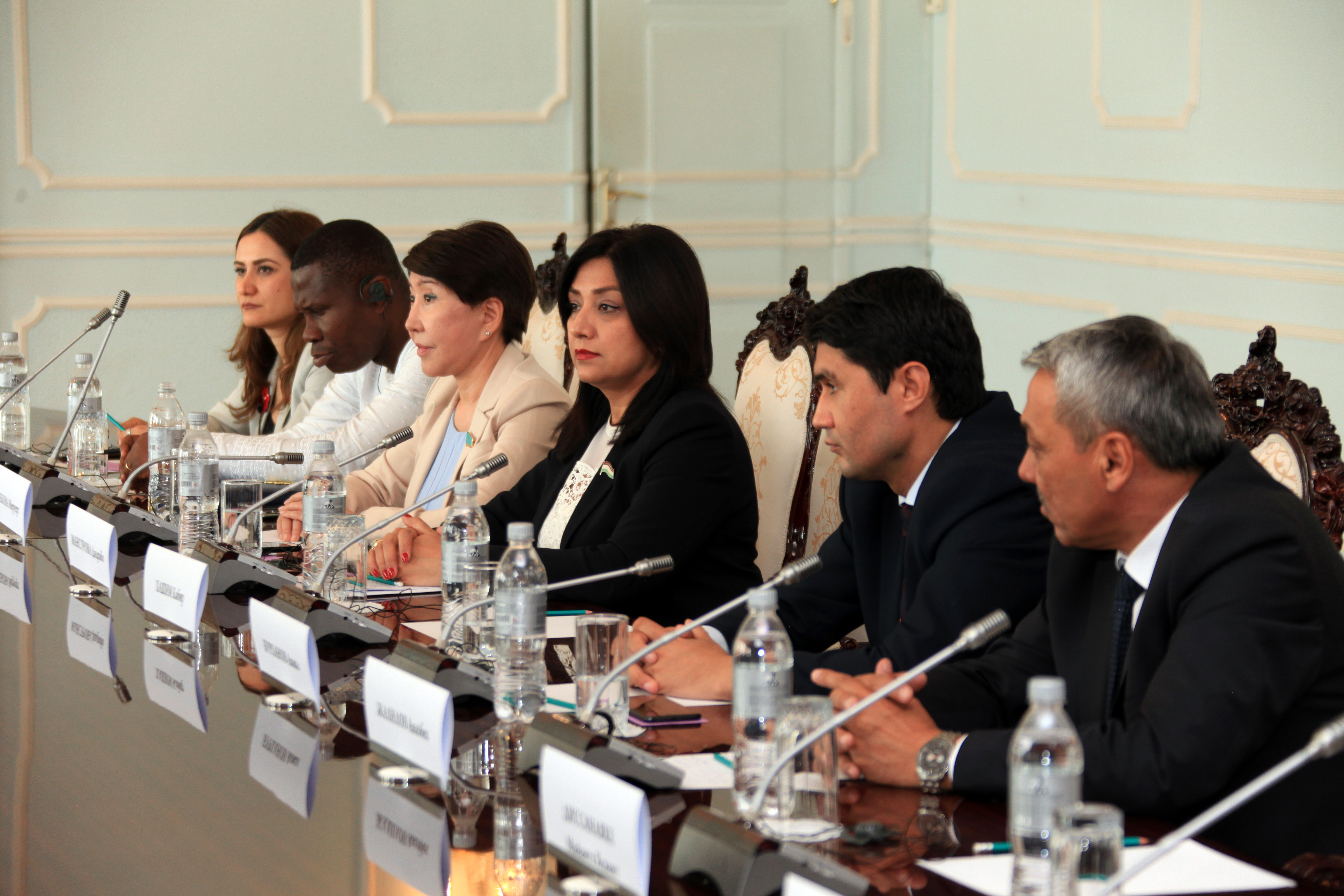 Бишкек, 07.06.19. /Кабар/. Бүгүн, 7-июнда Жогорку Кеӊештин депутаттар тобунун демилгеси менен эки күндөн бери Бишкек шаарында өтүп жаткан “Парламенттин ишинин натыйжалуулугун арттыруу үчүн мониторинг жана баа берүү” темасындагы Евразия парламентчилеринин аймактык форумунун катышуучулары Жогорку Кеӊештин вице-спикери Мирлан Бакиров башында турган депутаттар тобу менен жолугушту. Иш-чарага Жогорку Кеӊештин депутаттары Н.Никитенко, А.Касымалиева, А.Самигулина, А.Аскарова, А.Карашев, М.Аманкулов жана Б.Сулейманов катышты.