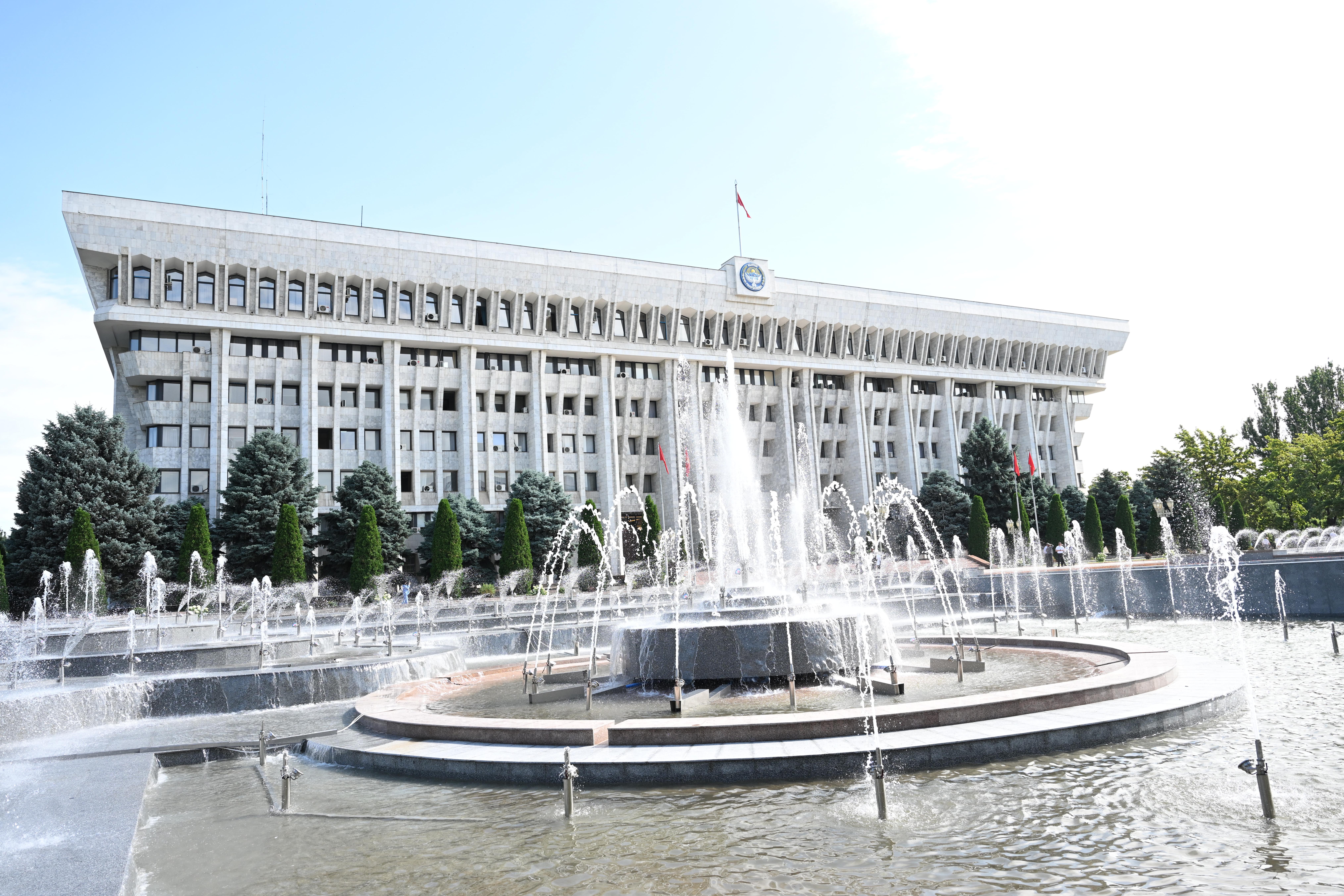 Бишкек, 13.06.24. /Кабар/. Бишкекте Жогорку Кеңештин имаратынын алдында жаңы фонтан ишке берилди.